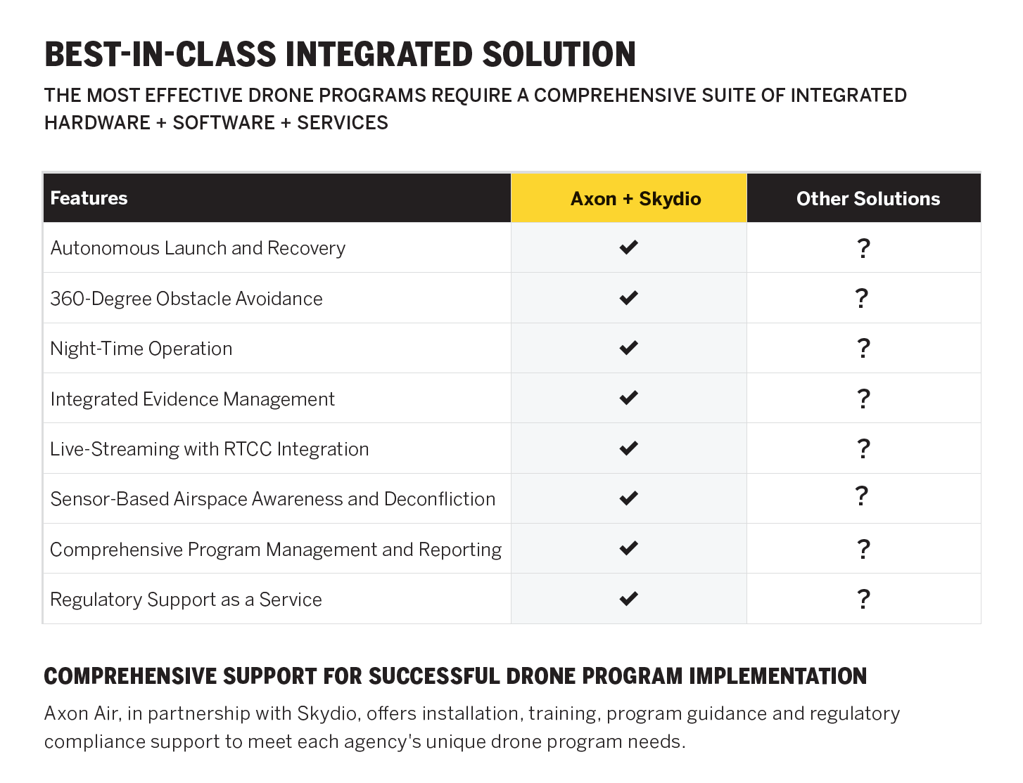 The critical components of a successful drone program are class-leading autonomy, integrated evidence management, real-time operations integration and sensor-based airspace awareness and deconfliction.