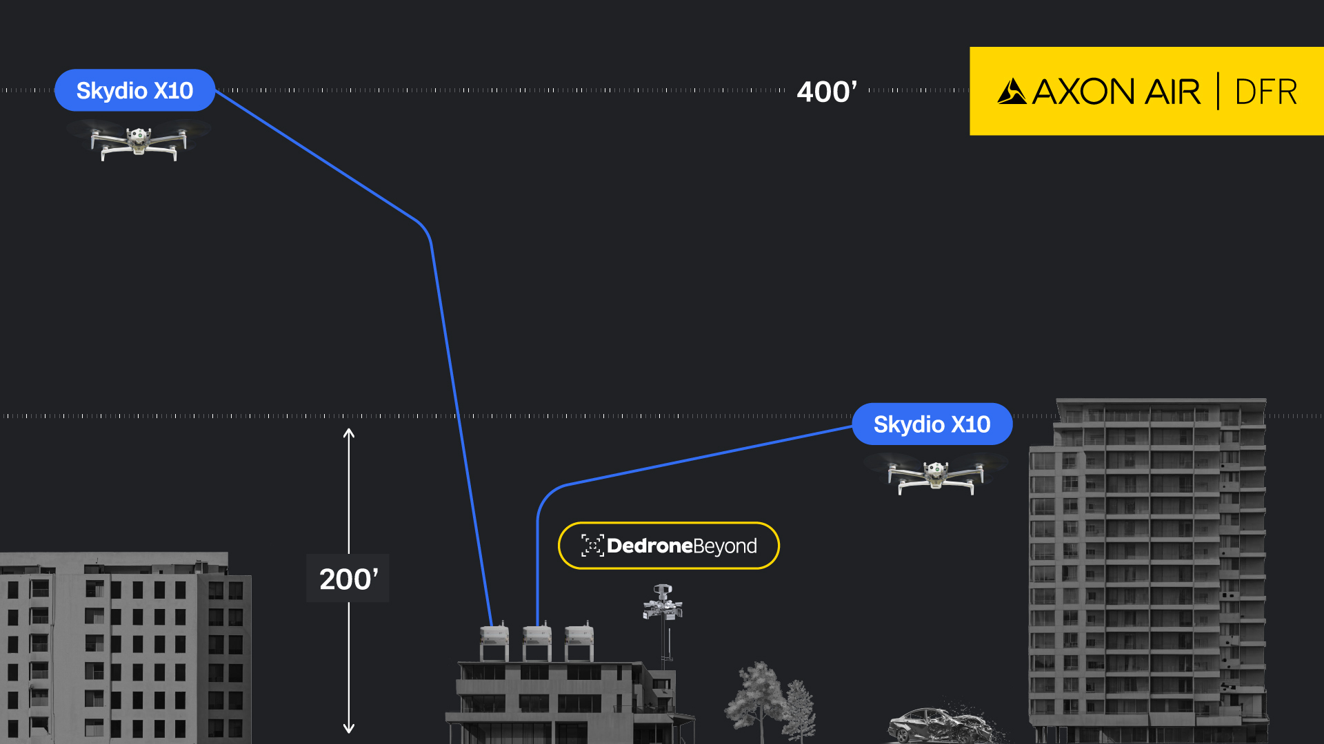 No other solution matches Axon Air DFR’s altitude capability. By combining the Skydio X10’s autonomous flight capabilities with DedroneBeyond’s advanced detect-and-avoid technology, agencies can confidently fly at any altitude—from low-level urban navigation to high-altitude situational awareness. Whether the mission calls for close-range visibility or broad aerial coverage, Axon Air DFR gives public safety teams the tools to handle any scenario.